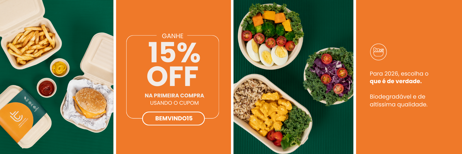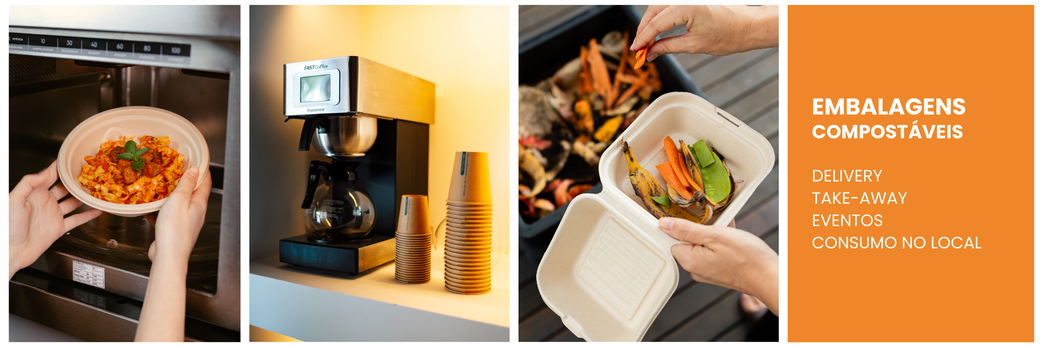 Soluções sustentáveis para delivery, take-away e eventos através de embalagens feitas de plantas.