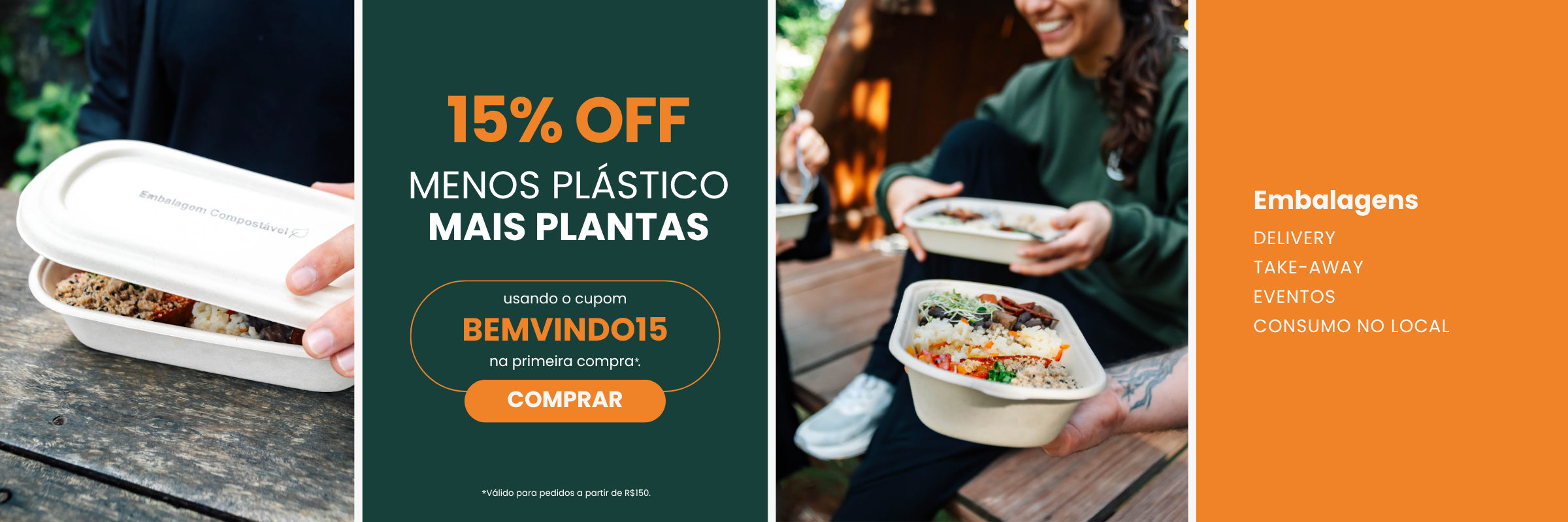 Soluções sustentáveis para delivery, take-away e eventos através de embalagens feitas de plantas.