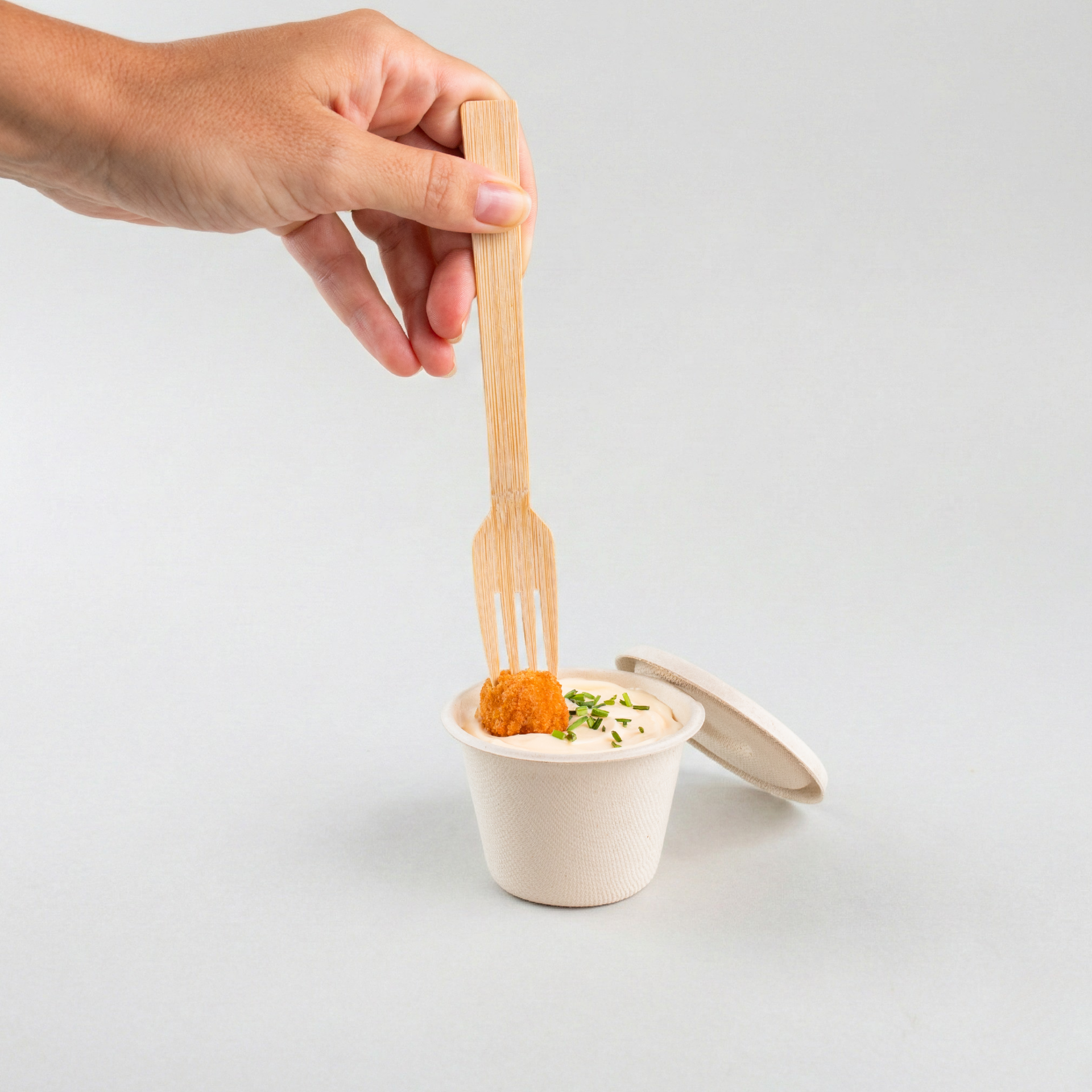Kit pote com tampa feito de palha de trigo, 100% compostável, ideal para molhos.