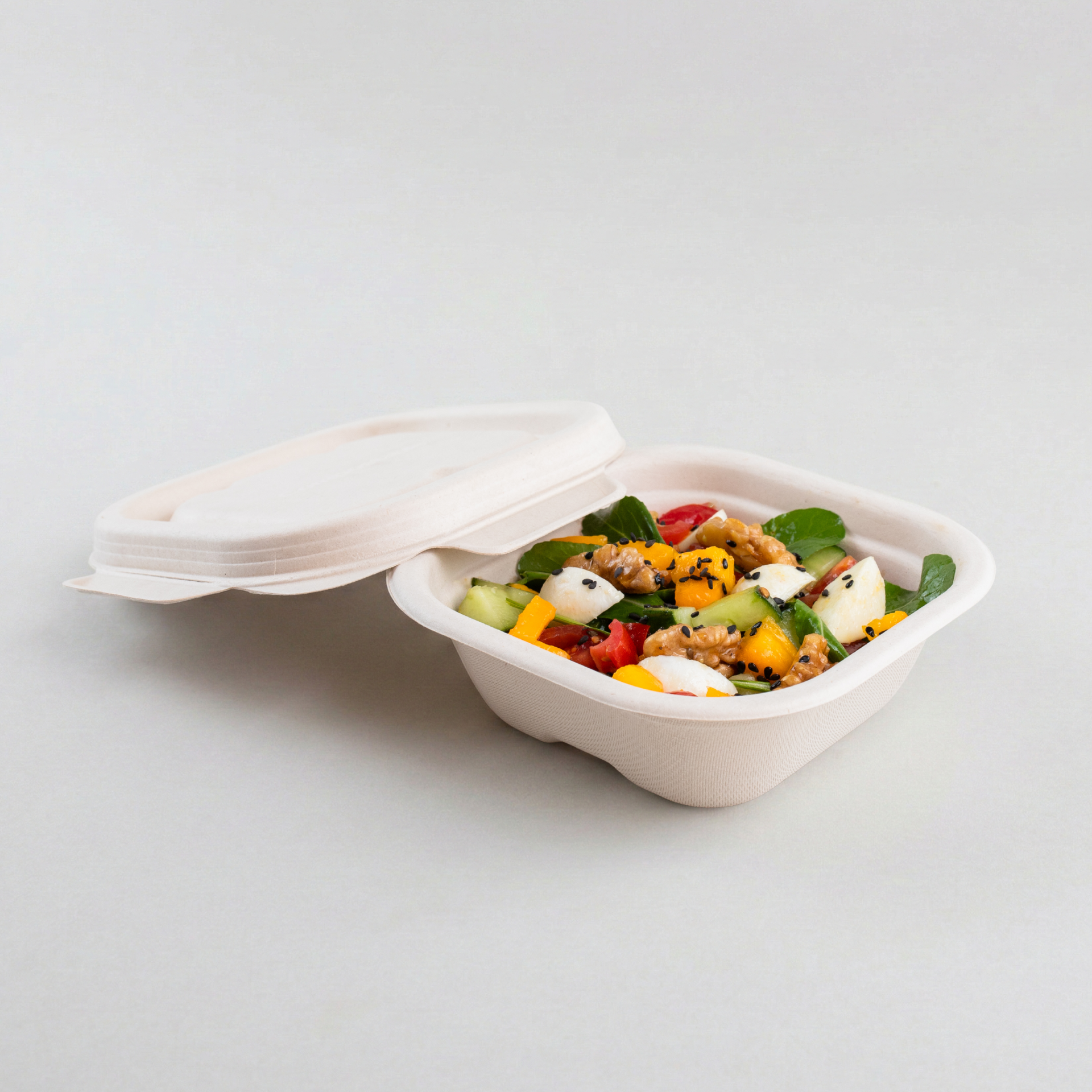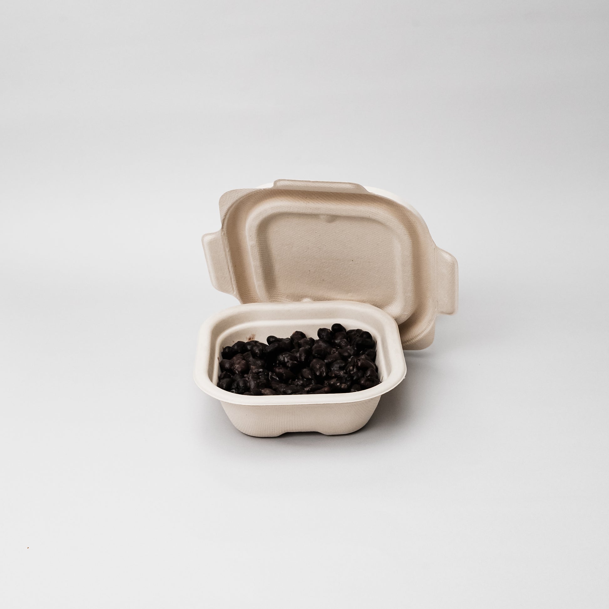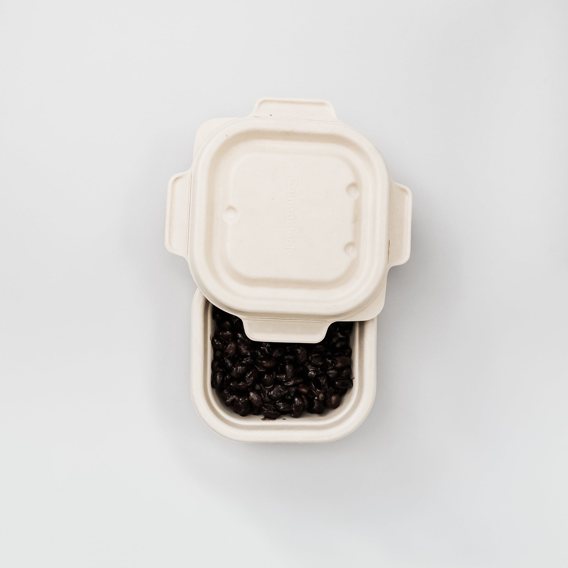 Kit pote biodegradável de 300ml quadrado com tampa. Base e tampa feitas do mesmo material. Fechamento por pressão e 4 travas. Ideal para todos tipos de acompanhamento.