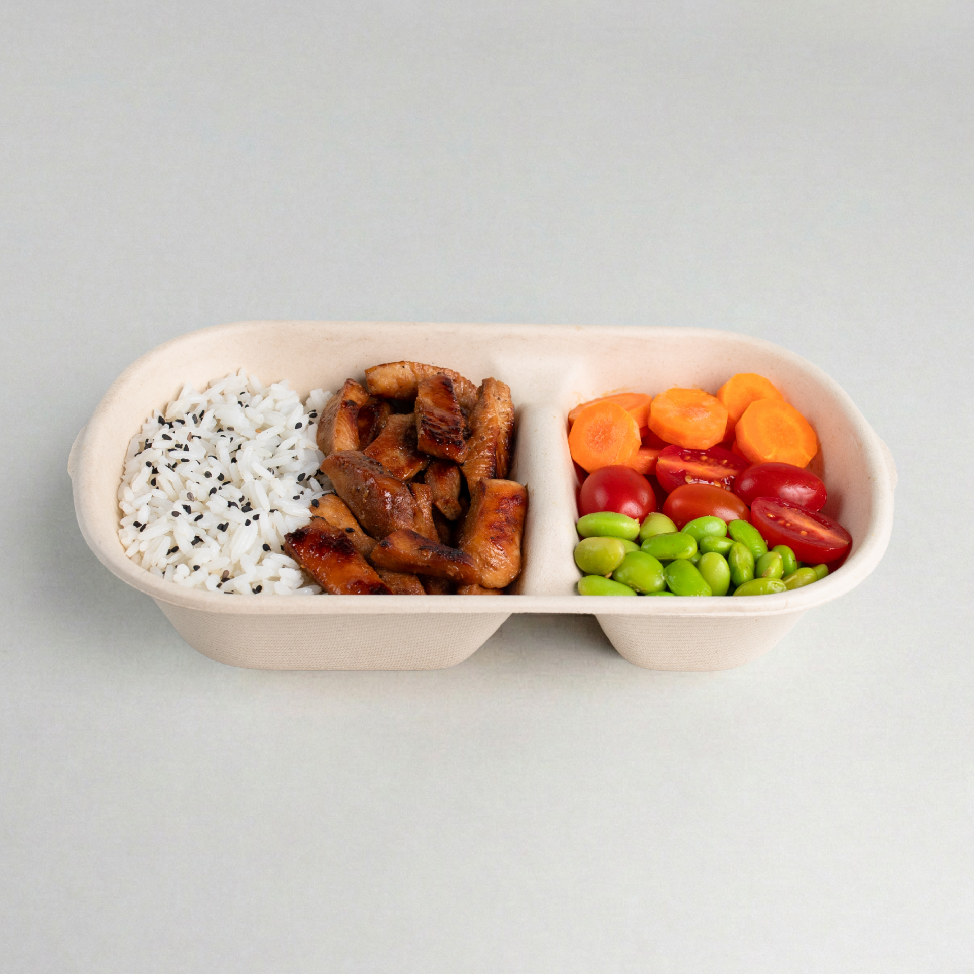 Marmita feita de fibras de plantas, 100% compostável. Perfeita para delivery de qualquer tipo de comida, fresca ou congelada. Também usada para eventos e consumo no local.