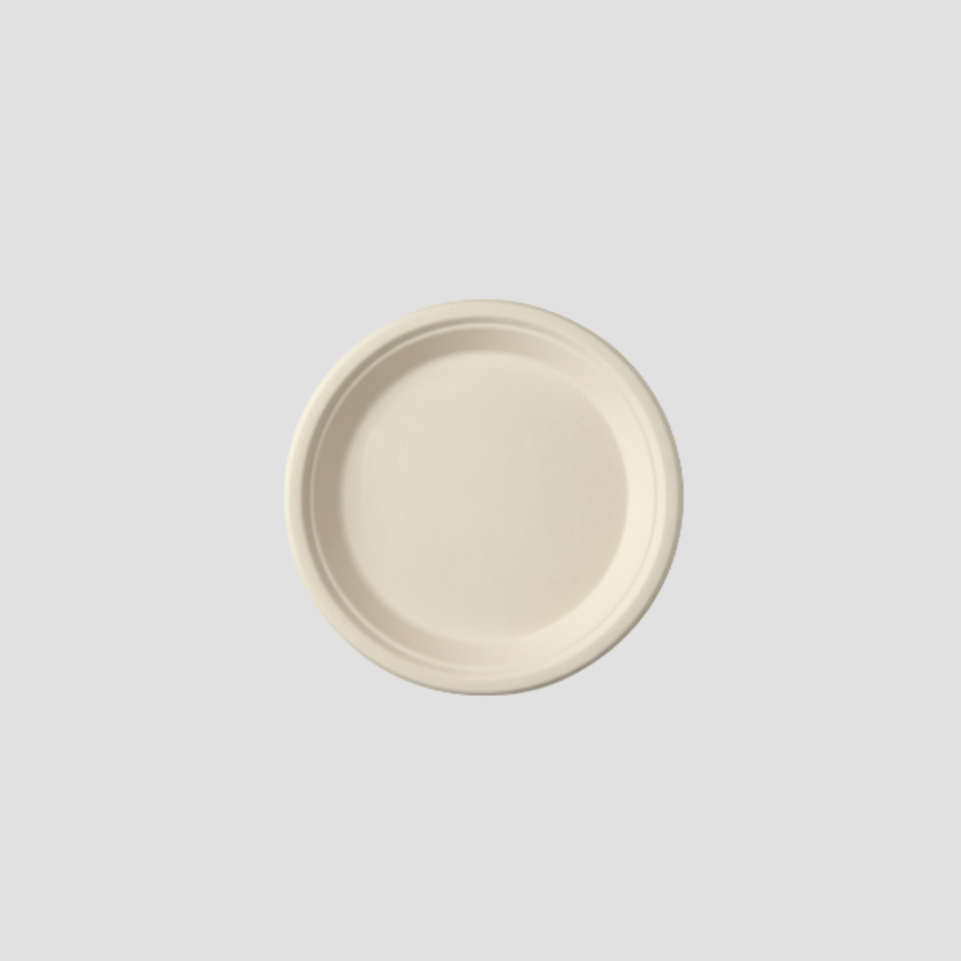 Prato feito de fibras de plantas, 100% compostável. Ideal para eventos, festas e consumo no local.