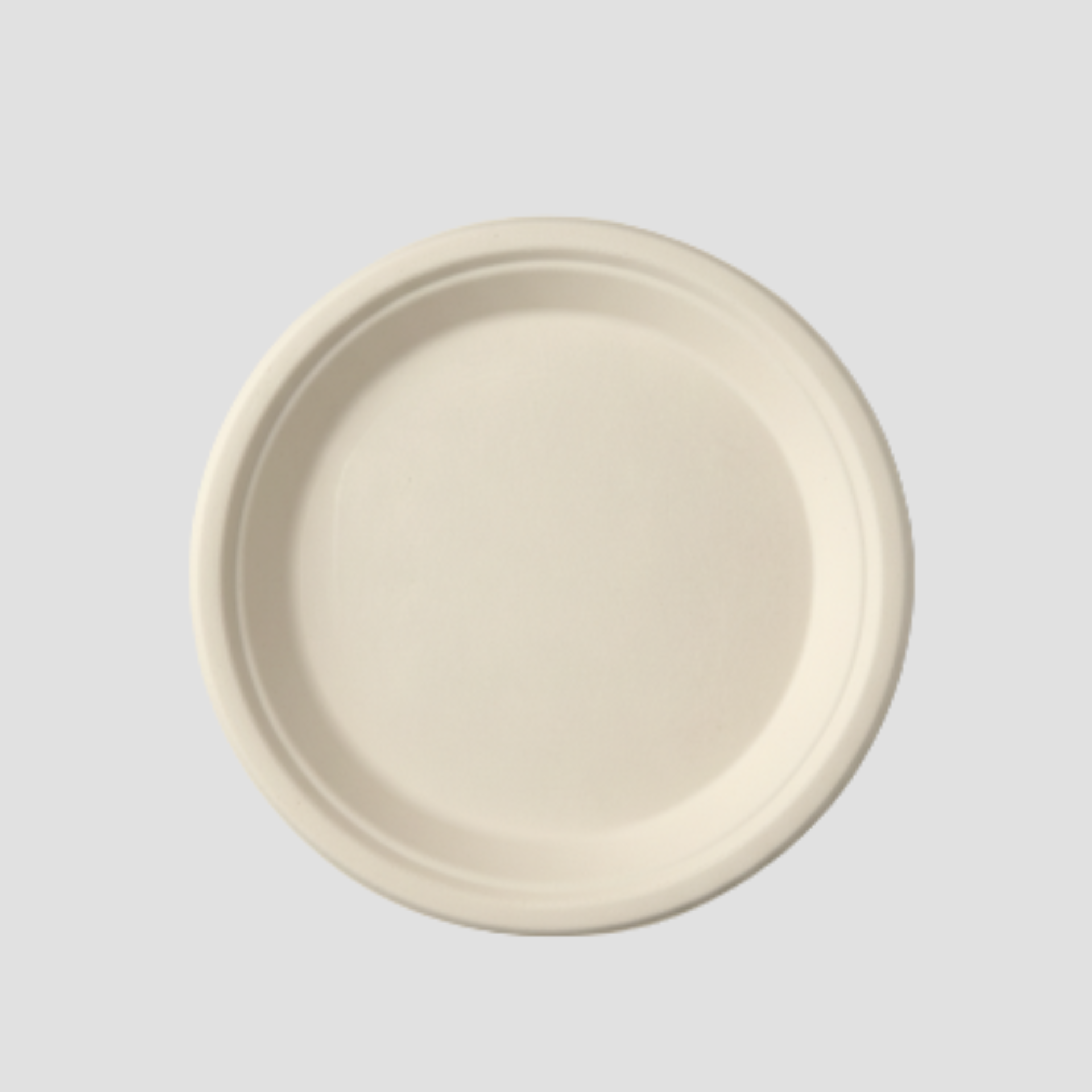 Prato feito de fibras de plantas, 100% compostável. Ideal para eventos, festas e consumo no local.