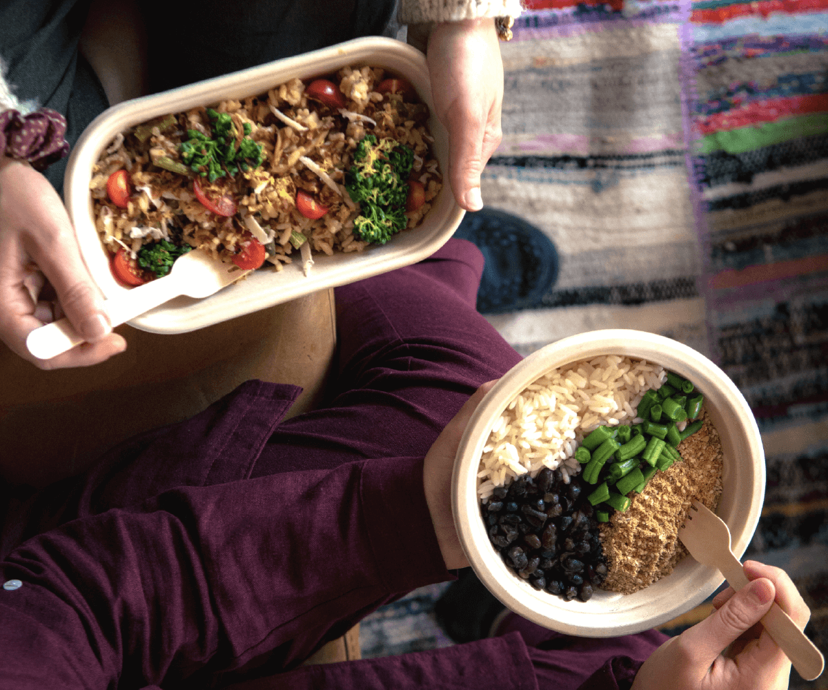 Prato feito de fibras de plantas, 100% compostável. Ideal para eventos, festas e consumo no local.
